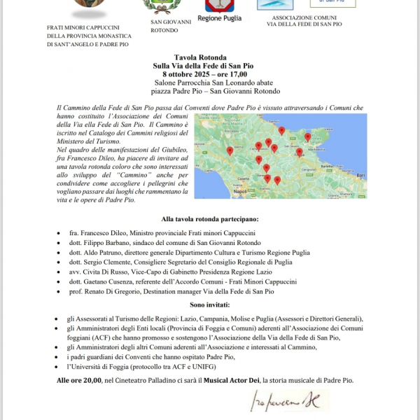 San Giovanni Rotondo: Tavola rotonda "Sulla via della fede di san Pio"
