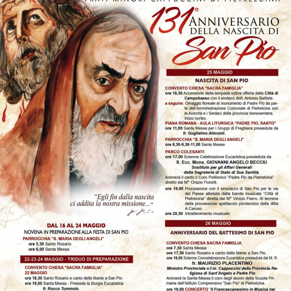 Pietrelcina: Festa anniversario nascita di Padre Pio