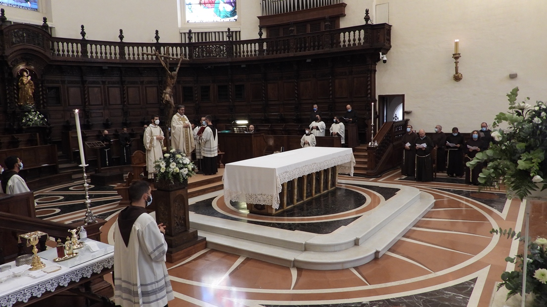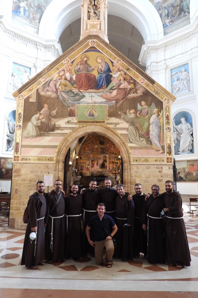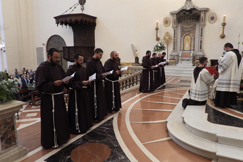 Si è svolto ieri, 17 settembre alle ore 9,00, nella Basilica Papale di Santa Maria degli Angeli alla Porziuncola, all’interno della celebrazione Eucaristica della festa delle Stimmate del Serafico Padre San Francesco, accolti dal rettore della Basilica fr. Massimo Tavascio, il rito della professione temporanea di otto giovani frati che hanno terminato il loro percorso dell’anno di Noviziato: fr. Enrico, fr.Vincenzo, fr. Domenico, fr. Elie, fr. Michele, fr. Angelo e i nostri fr. Mattia Piscitelli e fr. Tony Di Capua. La cerimonia è stata presieduta dal ministro provicnialel di Palermo fr. Salvatore Zagone alla presenza dei Ministri Provinciali della Collaborazione Interprovinciale della Formazione dell’Italia del Sud (CIFIS), dei relativi formatori della Casa di Noviziato di Morano Calabro (CS), di molti frati giunti dalle relative Province e dei parenti dei frati.