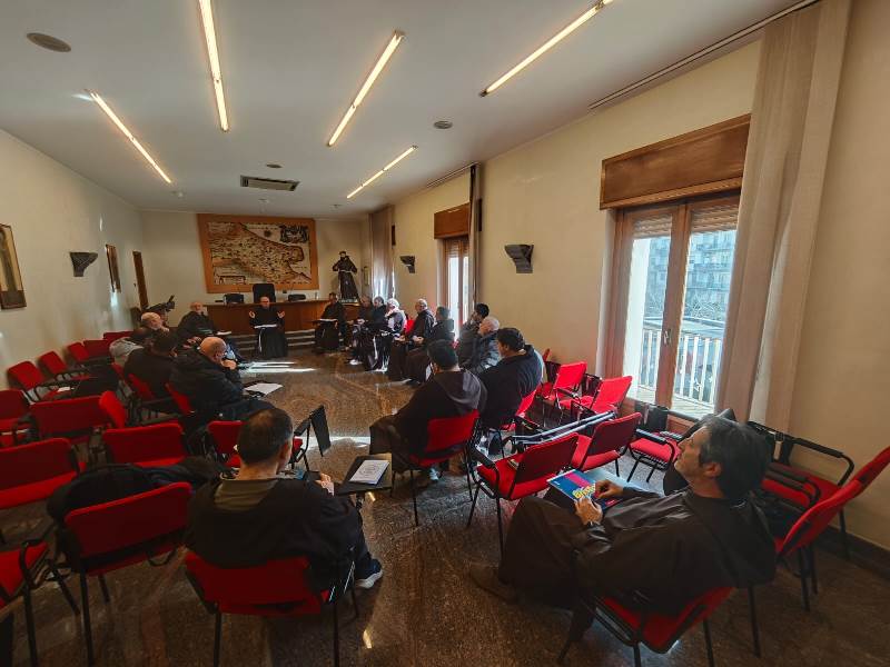 Si è appena concluso l’appuntamento di formazione permanente del mese di gennaio che si è tenuto oggi, lunedì 12, presso il nostro convento dell’Immacolata di Foggia. L’incontro in questione ha segnato una svolta metodologica significativa: per la prima volta, infatti, i frati si sono riuniti e confrontati secondo una suddivisione per fasce d’età. La scelta di questa modalità non è stata casuale, ma dettata dalla volontà di favorire un dialogo più mirato ed efficace. L’obiettivo? Far dialogare la prudenza di chi custodisce la memoria e i valori essenziali con la lungimiranza di chi coglie i segni del cambiamento, un’urgenza non più rimandabile per la vita della Provincia. Non si è trattato di un tavolo decisionale, quanto piuttosto di un "laboratorio di prospettive": un esercizio di ascolto utile a tracciare la rotta e determinare il giusto "passo" in vista del prossimo Capitolo Provinciale. Pertanto, dopo il momento iniziale di preghiera comunitaria, i frati giunti da tutti i conventi della Provincia sono stati suddivisi in tre aree generazionali: quelli nati prima del 31 dicembre 1957, quelli nati tra il 1° gennaio 1958 e il 31 dicembre 1979 e quelli nati dopo il 1° gennaio 1980. Sotto la guida di un facilitatore, ogni gruppo ha approfondito tre pilastri fondamentali per il presente e per il futuro: