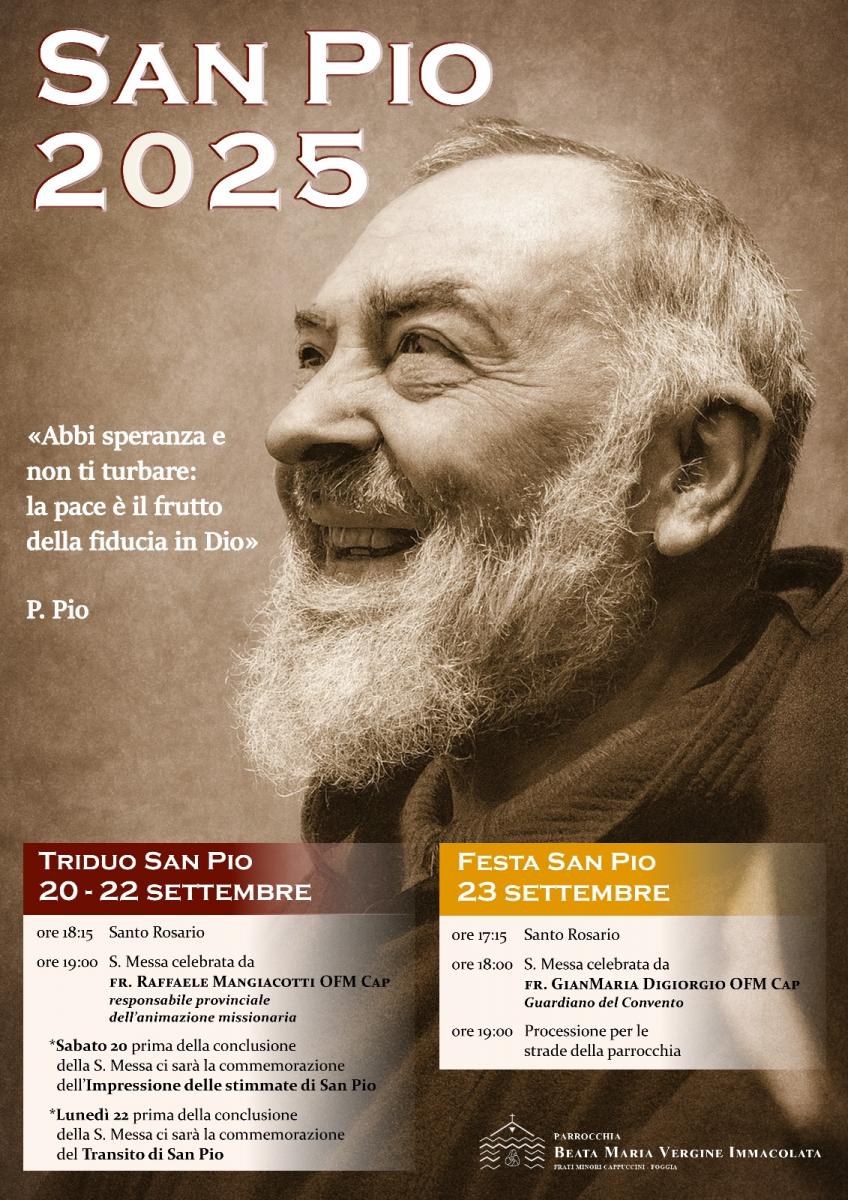 Foggia "Immacolata": Triduo e Festa San Pio da Pietrelcina