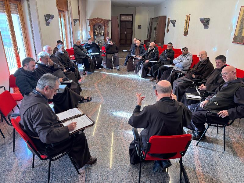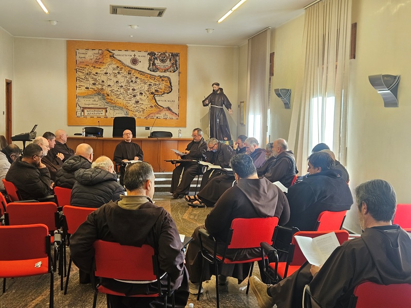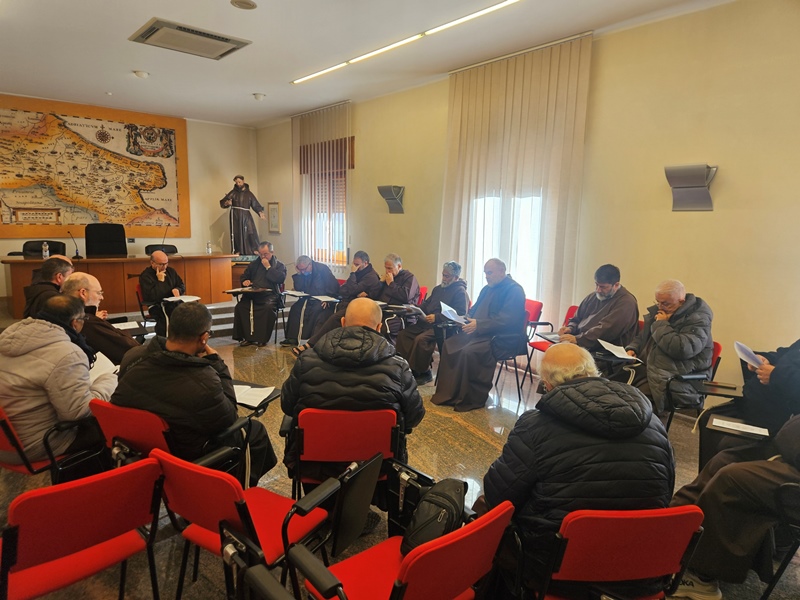 Si è appena concluso l’appuntamento di formazione permanente del mese di gennaio che si è tenuto oggi, lunedì 12, presso il nostro convento dell’Immacolata di Foggia. L’incontro in questione ha segnato una svolta metodologica significativa: per la prima volta, infatti, i frati si sono riuniti e confrontati secondo una suddivisione per fasce d’età. La scelta di questa modalità non è stata casuale, ma dettata dalla volontà di favorire un dialogo più mirato ed efficace. L’obiettivo? Far dialogare la prudenza di chi custodisce la memoria e i valori essenziali con la lungimiranza di chi coglie i segni del cambiamento, un’urgenza non più rimandabile per la vita della Provincia. Non si è trattato di un tavolo decisionale, quanto piuttosto di un "laboratorio di prospettive": un esercizio di ascolto utile a tracciare la rotta e determinare il giusto "passo" in vista del prossimo Capitolo Provinciale. Pertanto, dopo il momento iniziale di preghiera comunitaria, i frati giunti da tutti i conventi della Provincia sono stati suddivisi in tre aree generazionali: quelli nati prima del 31 dicembre 1957, quelli nati tra il 1° gennaio 1958 e il 31 dicembre 1979 e quelli nati dopo il 1° gennaio 1980. Sotto la guida di un facilitatore, ogni gruppo ha approfondito tre pilastri fondamentali per il presente e per il futuro: