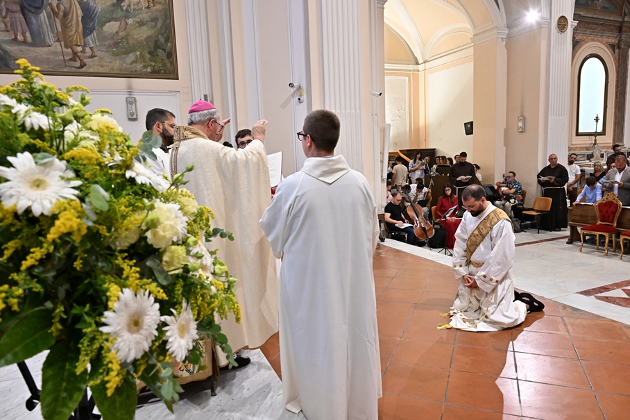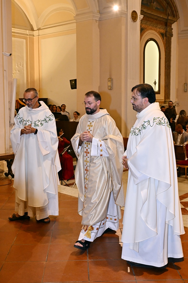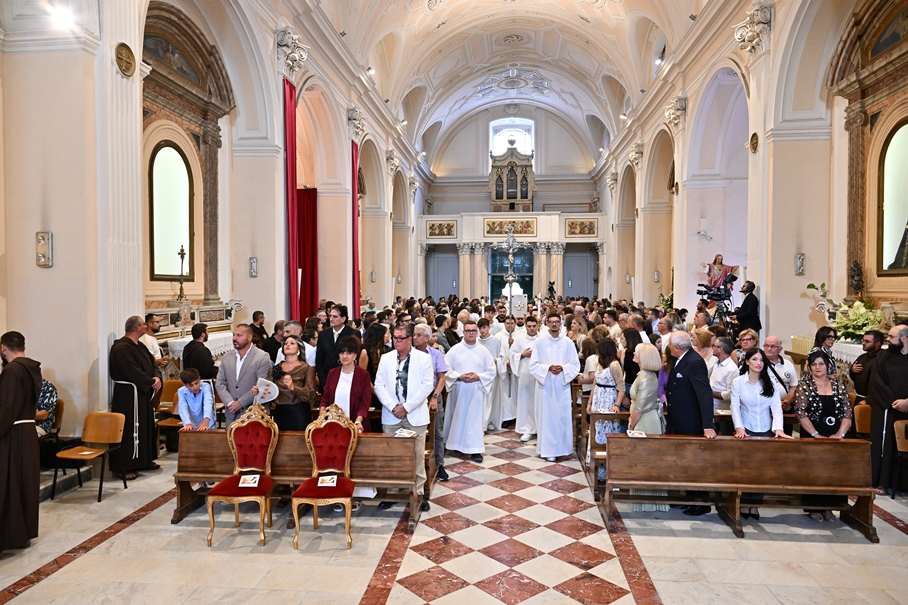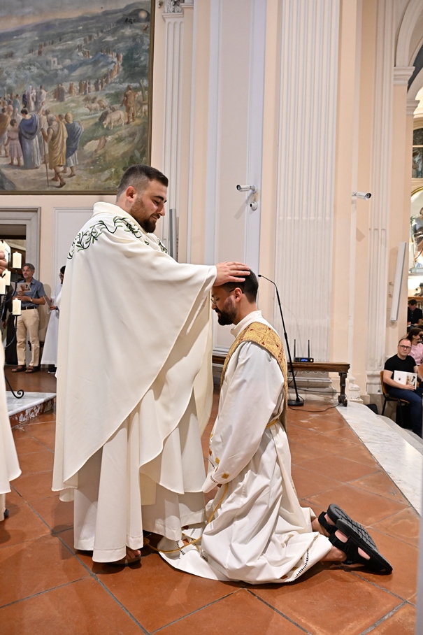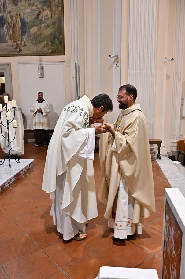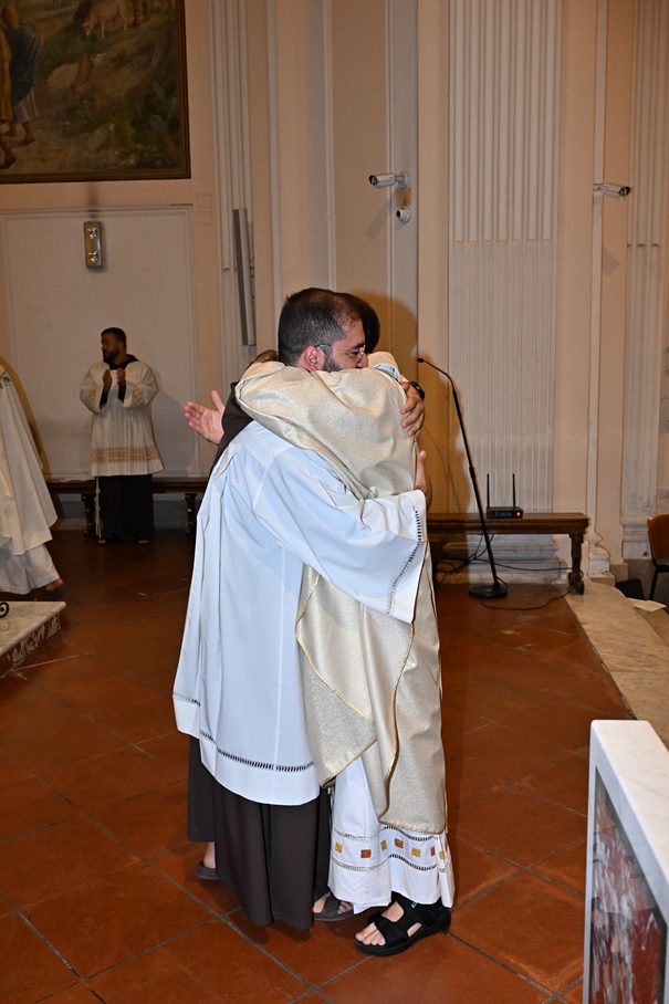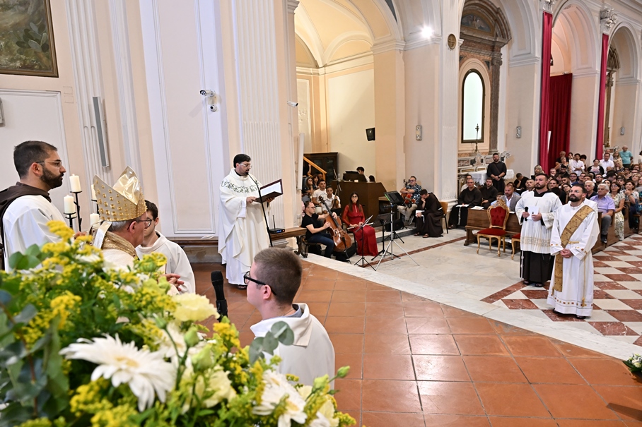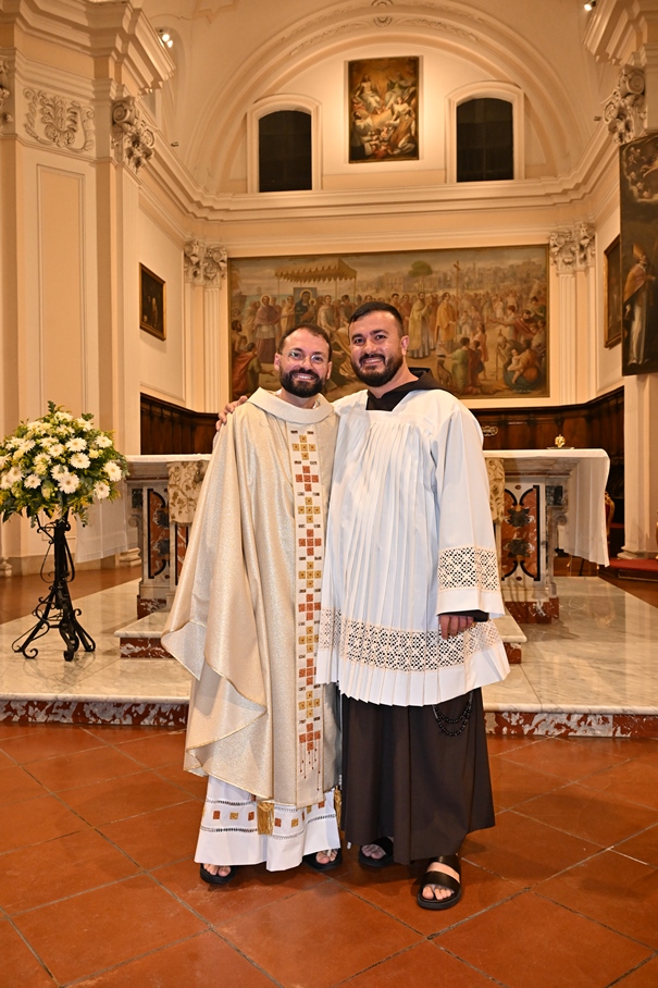 Giorni di festa per la nostra Provincia religiosa: sabato 6 e domenica 7 settembre, frati della Provincia sono convenuti a Manfredonia per partecipare all’ordinazione presbiterale di fr. Matteo Lamparella, originario del posto. La Messa di ordinazione è stata celebrata nella cattedrale di San Lorenzo Maiorano in Manfredonia, presieduta da S. E. Rev.ma Mons. Francesco Moscone, ordinario del luogo, mentre nella Chiesa parrocchiale di Santa Maria del Carmine il neo ordinato ha presieduto per la prima volta la Celebrazione eucaristica. All’evento erano presenti i familiari, gli amici di fr. Matteo, alcuni presbiteri del posto e i confratelli fra cui il ministro provinciale, fr. Francesco Dileo, il consigliere generale, fr. Maurizio Placentino (al quale è spettato l’onere di predicare durante la Messa di domenica 7 settembre), il vicario provinciale, fr. Aldo Broccato, i frati della Curia provinciale, ed altri confratelli giunti dai conventi della Provincia e del Sud Italia, dalle fraternità formative, oltre ad un gruppetto di frati provenienti da Oreno di Vimercate (MB) e dalla Romania. Dopo ogni celebrazione, la festa è proseguita con bei momenti di convivialità fraterna. Auguriamo a fr. Matteo Lamparella di vivere il suo sacerdozio nella vera letizia, testimoniata con la vita dal nostro Padre Francesco d’Assisi.