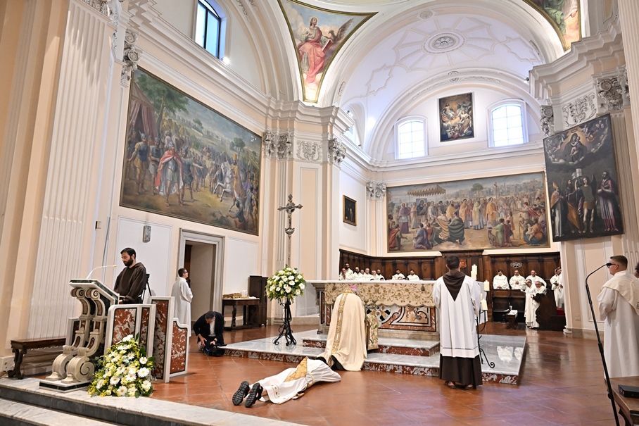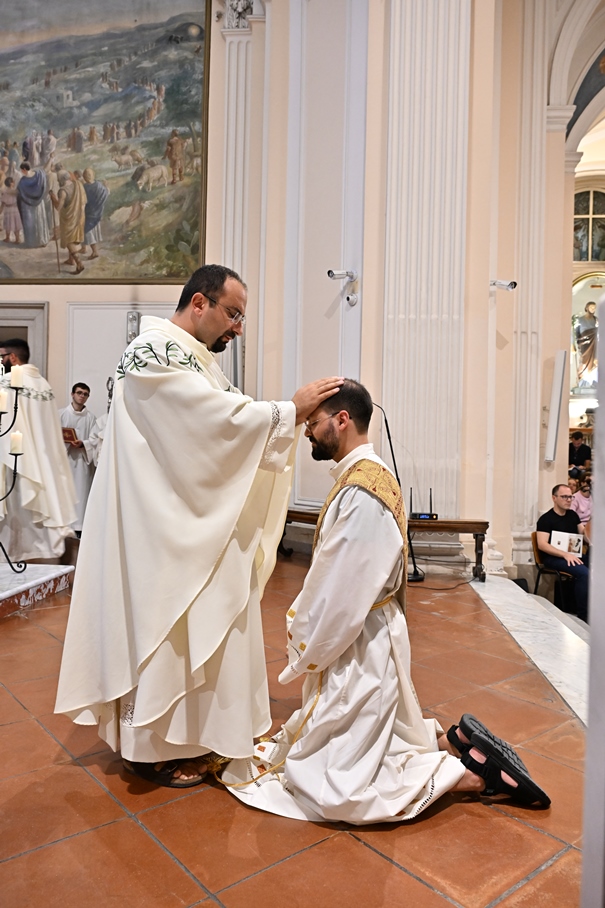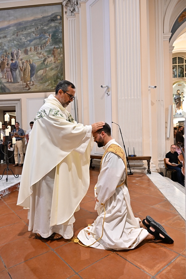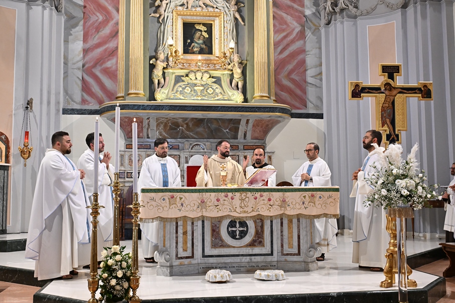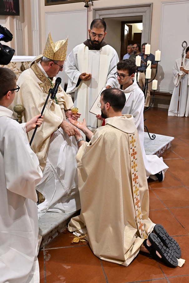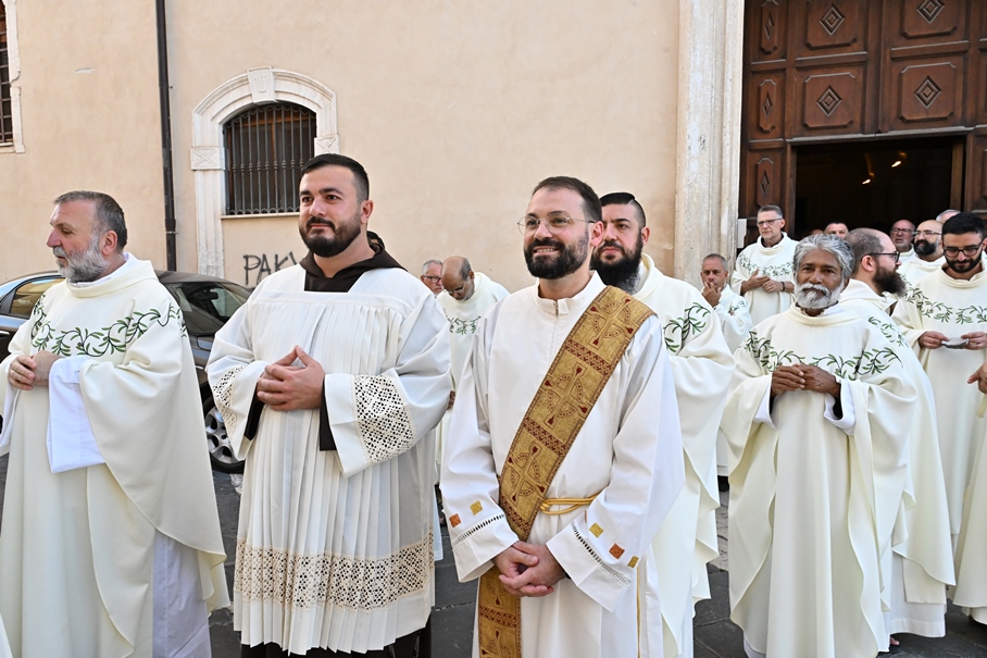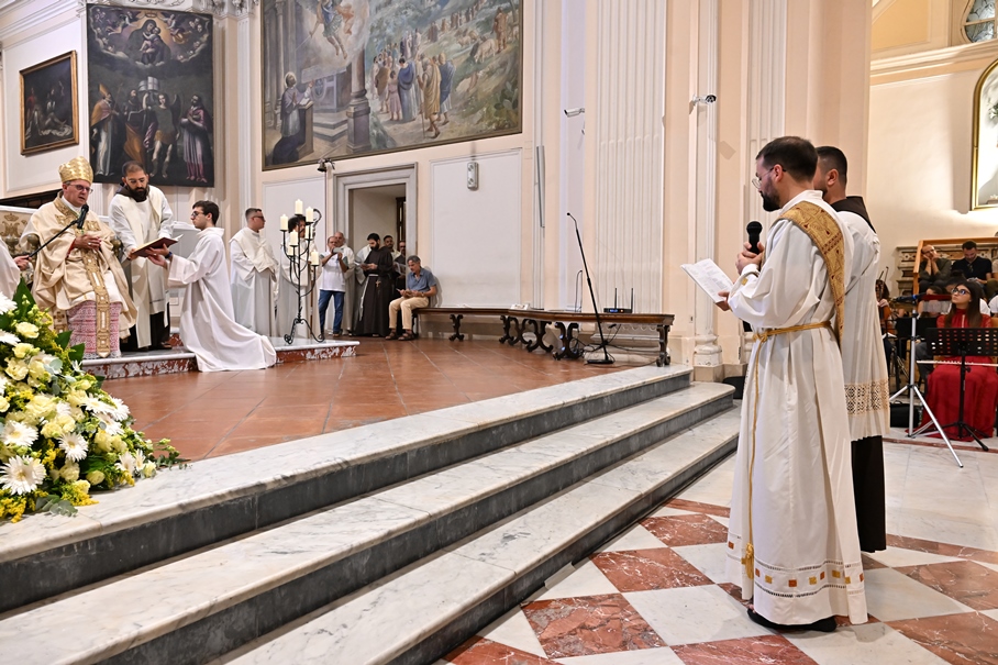 Giorni di festa per la nostra Provincia religiosa: sabato 6 e domenica 7 settembre, frati della Provincia sono convenuti a Manfredonia per partecipare all’ordinazione presbiterale di fr. Matteo Lamparella, originario del posto. La Messa di ordinazione è stata celebrata nella cattedrale di San Lorenzo Maiorano in Manfredonia, presieduta da S. E. Rev.ma Mons. Francesco Moscone, ordinario del luogo, mentre nella Chiesa parrocchiale di Santa Maria del Carmine il neo ordinato ha presieduto per la prima volta la Celebrazione eucaristica. All’evento erano presenti i familiari, gli amici di fr. Matteo, alcuni presbiteri del posto e i confratelli fra cui il ministro provinciale, fr. Francesco Dileo, il consigliere generale, fr. Maurizio Placentino (al quale è spettato l’onere di predicare durante la Messa di domenica 7 settembre), il vicario provinciale, fr. Aldo Broccato, i frati della Curia provinciale, ed altri confratelli giunti dai conventi della Provincia e del Sud Italia, dalle fraternità formative, oltre ad un gruppetto di frati provenienti da Oreno di Vimercate (MB) e dalla Romania. Dopo ogni celebrazione, la festa è proseguita con bei momenti di convivialità fraterna. Auguriamo a fr. Matteo Lamparella di vivere il suo sacerdozio nella vera letizia, testimoniata con la vita dal nostro Padre Francesco d’Assisi.