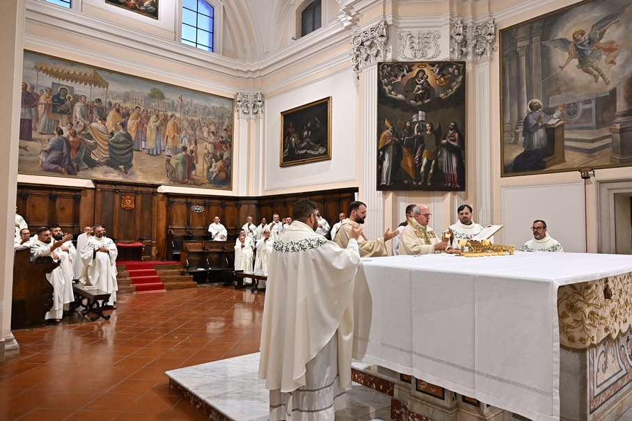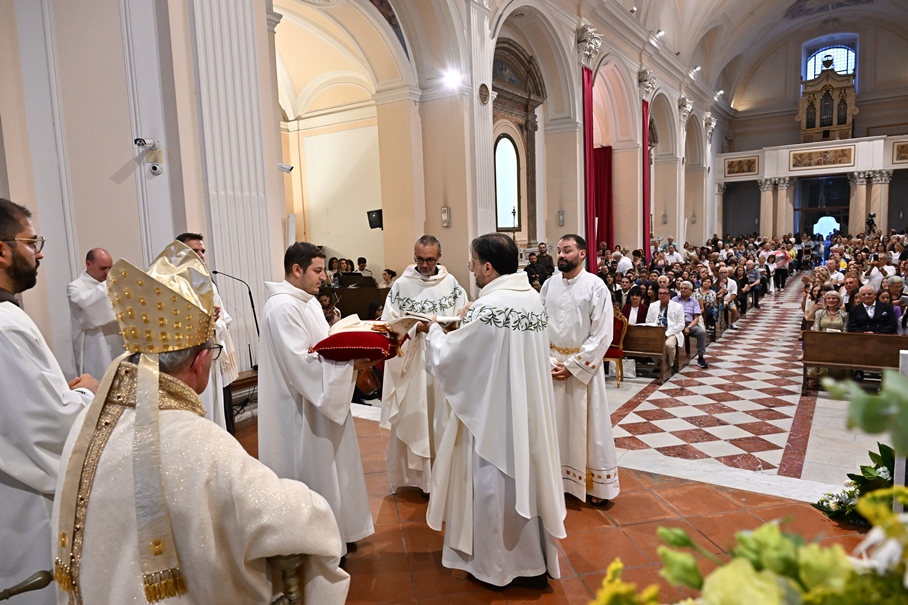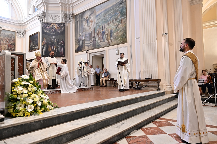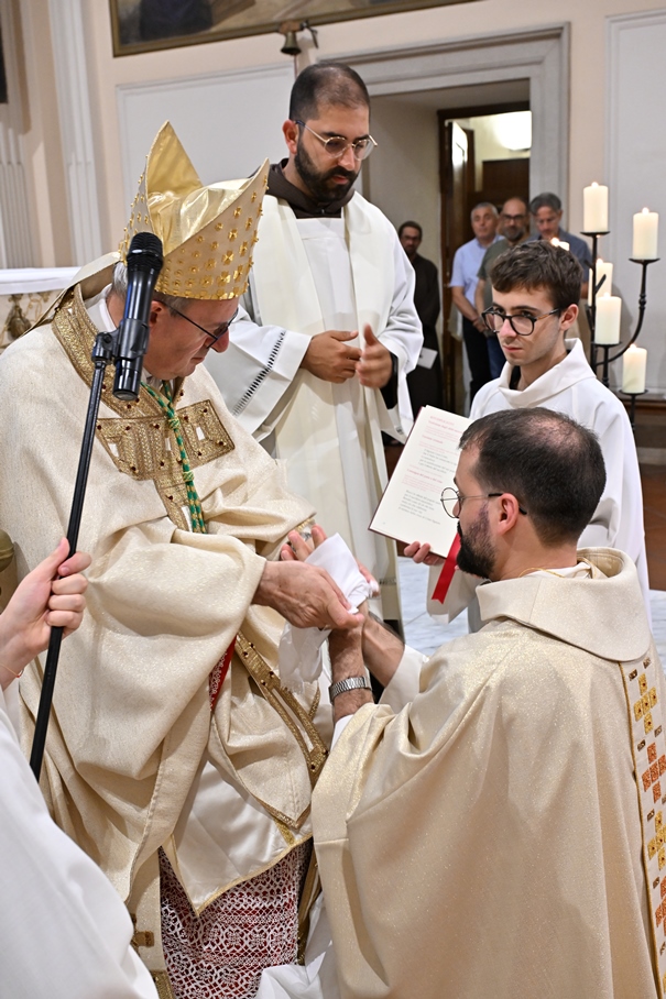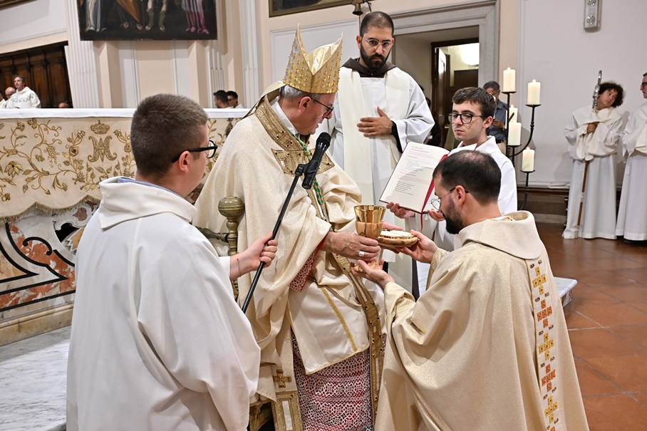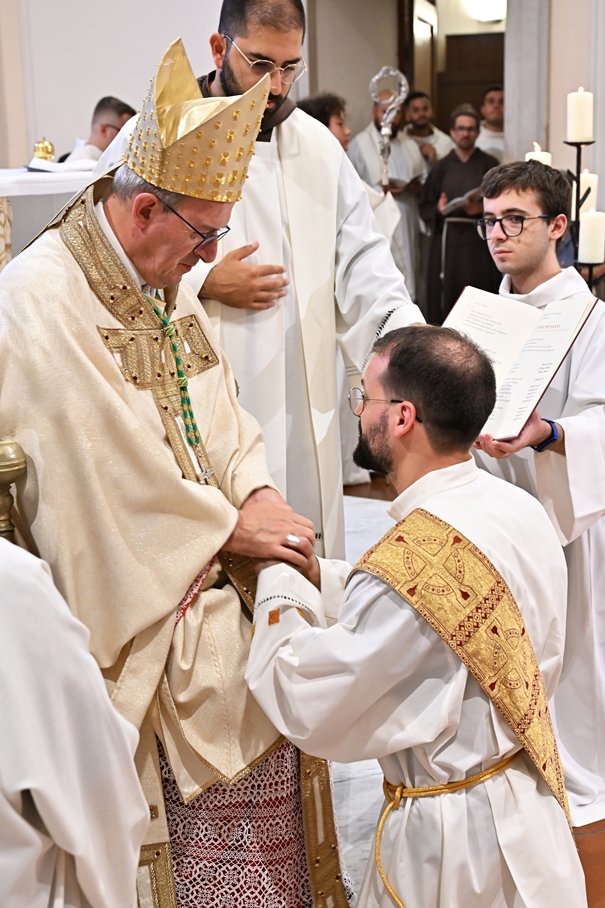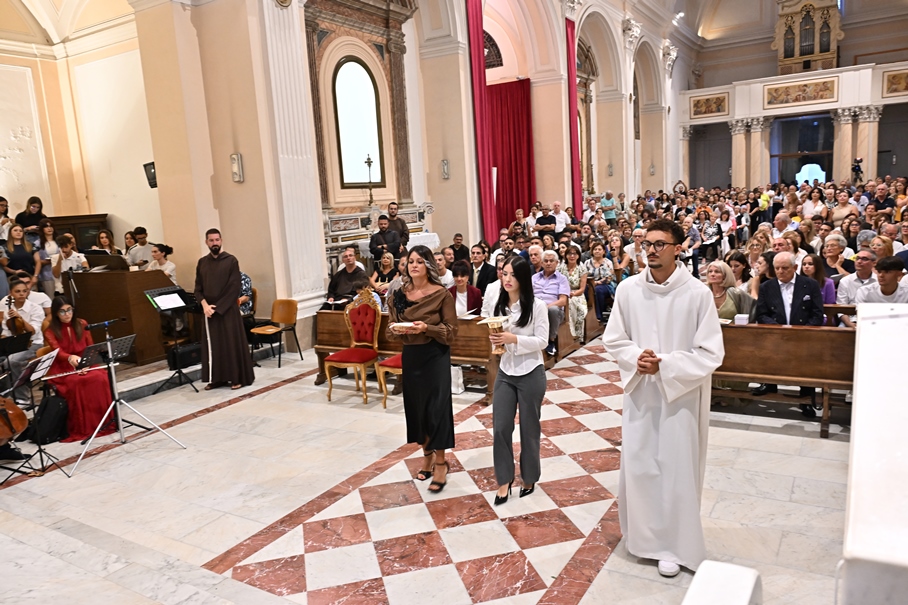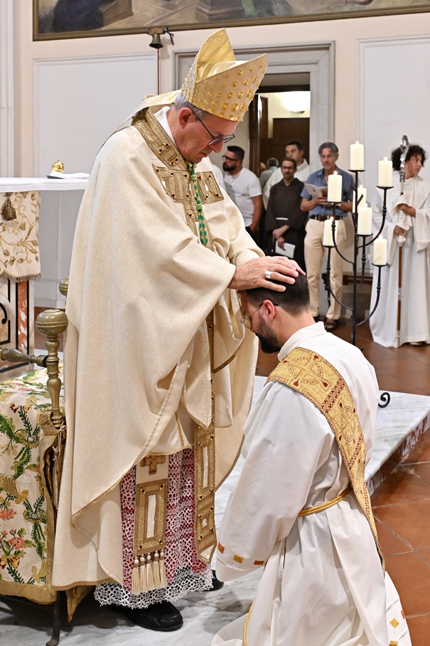 Giorni di festa per la nostra Provincia religiosa: sabato 6 e domenica 7 settembre, frati della Provincia sono convenuti a Manfredonia per partecipare all’ordinazione presbiterale di fr. Matteo Lamparella, originario del posto. La Messa di ordinazione è stata celebrata nella cattedrale di San Lorenzo Maiorano in Manfredonia, presieduta da S. E. Rev.ma Mons. Francesco Moscone, ordinario del luogo, mentre nella Chiesa parrocchiale di Santa Maria del Carmine il neo ordinato ha presieduto per la prima volta la Celebrazione eucaristica. All’evento erano presenti i familiari, gli amici di fr. Matteo, alcuni presbiteri del posto e i confratelli fra cui il ministro provinciale, fr. Francesco Dileo, il consigliere generale, fr. Maurizio Placentino (al quale è spettato l’onere di predicare durante la Messa di domenica 7 settembre), il vicario provinciale, fr. Aldo Broccato, i frati della Curia provinciale, ed altri confratelli giunti dai conventi della Provincia e del Sud Italia, dalle fraternità formative, oltre ad un gruppetto di frati provenienti da Oreno di Vimercate (MB) e dalla Romania. Dopo ogni celebrazione, la festa è proseguita con bei momenti di convivialità fraterna. Auguriamo a fr. Matteo Lamparella di vivere il suo sacerdozio nella vera letizia, testimoniata con la vita dal nostro Padre Francesco d’Assisi.