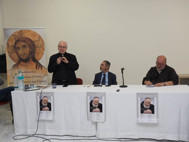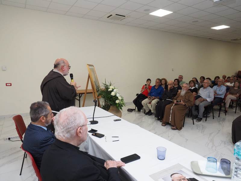Per il V anniversario di apertura della causa di beatificazione e di canonizzazione di fr. Modestino Fucci, si è svolto, a Pietrelcina il giorno 13, presso il Centro pastorale parrocchiale “Casa Padre Pio”, e a San Giovanni Rotondo, presso la chiesetta conventuale antica, il giorno 15 un Talk show dal titolo “Un frate cappuccino maestro di anime”. Organizzato dal vicepostulatore della causa, fr. Nazario Vasciarelli, all’evento sono intervenuti, oltre a fr. Nazario, il ministro provinciale, fr. Francesco Dileo, il direttore di Padre Pio TV, dott. Stefano Campanella, ed il Mons. Francesco Follo, osservatore permanente emerito della Santa Sede presso l’Unesco. I relatori, alternando un resoconto storico all’introduzione della causa di beatificazione e canonizzazione ed anche condividendo testimonianze personali, hanno offerto un ritratto di fr. Modestino e della sua quotidianità, riuscendo a comunicare il messaggio di questo venerabile confratello e cioè che la santità è una chiamata per tutti da realizzare per il bene di coloro che si incontrano nella vita ordinaria.