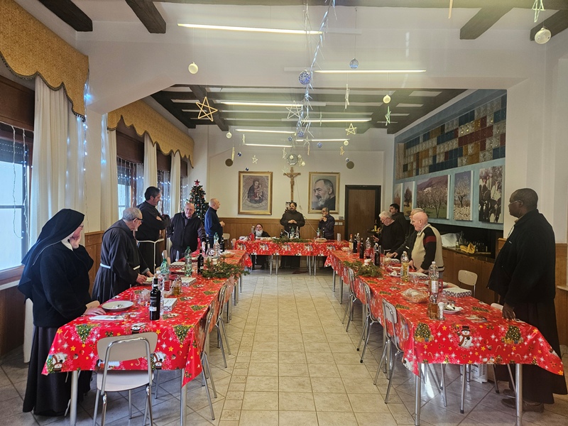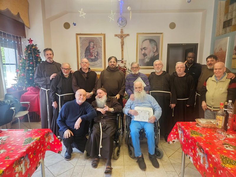 Domenica 22 dicembre, il ministro provinciale, fr. Francesco Dileo ha fatto visita ai nostri confratelli ospiti nell’Infermeria Provinciale per il consueto scambio degli auguri di Natale. Alla presenza del vicario provinciale, fr. Aldo Broccato, del guardiano di San Giovanni Rotondo, fr. Rinaldo Totaro, del responsabile dell’infermeria, fr. Carmine Sanzone, dell’economo provinciale, fr. Matteo Lecce, e del segretario provinciale, fr. Antonio Gabrielli, il Ministro ha rivolto i suoi saluti e gli auguri ai confratelli anziani con un breve discorso, al quale ha fatto seguito una preghiera e la condivisione del pranzo. Il tutto si è svolto in un clima di festa e di convivialità fraterna.