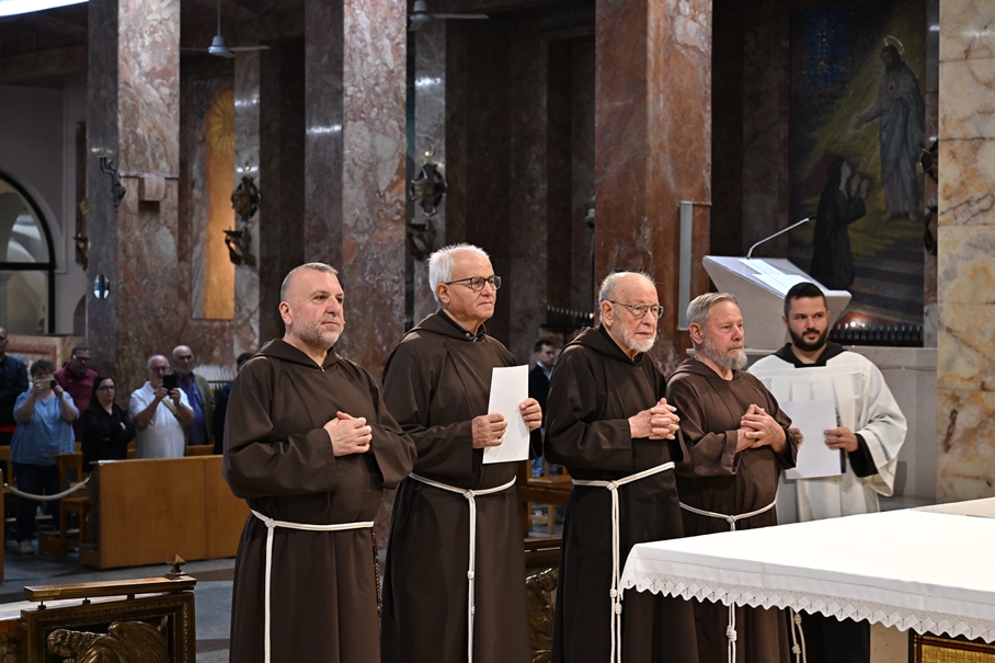 Alle ore 10:00, nel coro antico di San Giovanni Rotondo, ha avuto inizio la commemorazione del 106° anniversario dell'impressione delle stimmate di San Pio da Pietrelcina (20 settembre 1918). Il Ministro provinciale, fr. Francesco Dileo, ha presieduto il rito alla presenza dei confratelli della fraternità locale mentre gli altri frati, giunti dai conventi della Provincia, oltre alla presenza amica di fr. Alwyn Dias, ministro provinciale di Karnataka (India) e fr. Guido Fineschi OFM, guardiano de La Verna, partecipavano dai banchi della chiesetta antica. Dopo la parte iniziale del rito commemorativo, tutti frati in processione hanno raggiunto la chiesa nuova di Santa Maria delle Grazie dove, alla presenza di una folla di pellegrini e devoti, si è svolta una liturgia della Parola durante la quale, dopo l’omelia del Ministro provinciale, quattro fratelli, nel giorno del loro anniversario di professione religiosa (fr. Ireneo Guerrieri, 70°, fr. Nicola Squarcella e fr. Rinaldo Totaro, 60°, e fr. Eduardo Giglia, 25°), hanno confermato i voti religiosi.