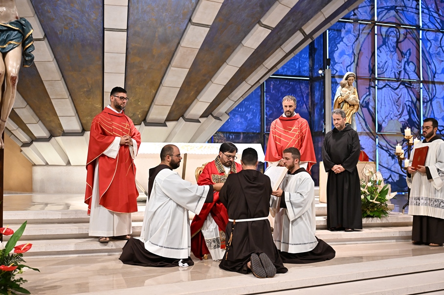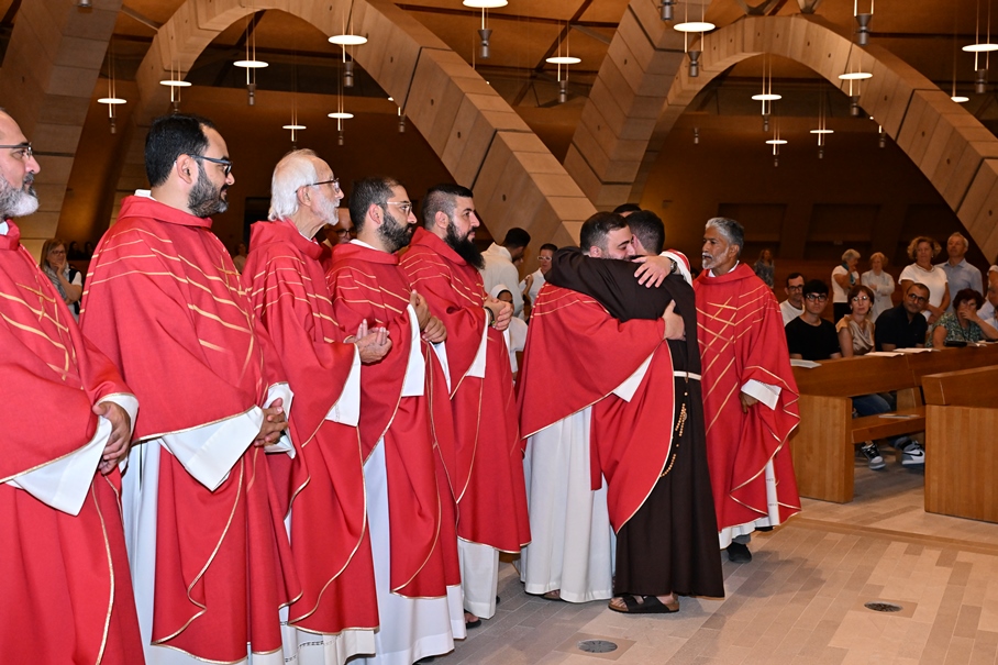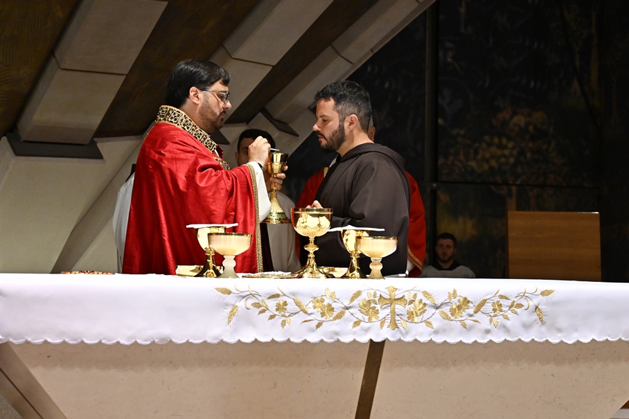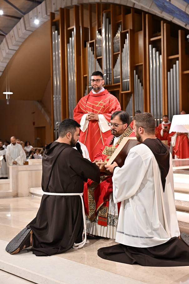 Continua la festa in Provincia: fr. Antonio Di Capua, attualmente nel convento di Santa Fara in Bari per lo studio della teologia, ha emesso, lo scorso 14 settembre nella chiesa di San Pio in San Giovanni Rotondo, la professione perpetua dei voti religiosi nelle mani del nostro ministro provinciale, fr. Francesco Dileo. Il rito si è svolto durate la Concelebrazione eucaristica delle ore 18:00, presieduta dallo stesso Ministro, alla quale hanno partecipato il vicario provinciale, fr. Aldo Broccato, la fraternità di san Giovanni Rotondo, altri confratelli giunti dalla Cura provinciale, dai conventi della Provincia e dalle fraternità formative e da altri conventi del Sud Italia. Naturalmente, erano presenti i familiari, gli amici di fr. Antonio, originario di Castellammare di Stabia (NA), ed anche alcuni sacerdoti, fra cui il parroco della Parrocchia di origine del profitente. La festa è proseguita con un momento di gioiosa convivialità presso la Sala del Pellegrino. A fr. Antonio rivolgiamo i nostri più cari e fraterni auguri affinchè il Signore lo colmi della grazia necessaria per custodire lo spirito di orazione e di devozione, come richiesto dal Serafico Padre Francesco nella nostra regola di vita.