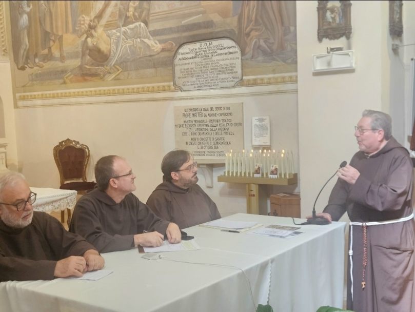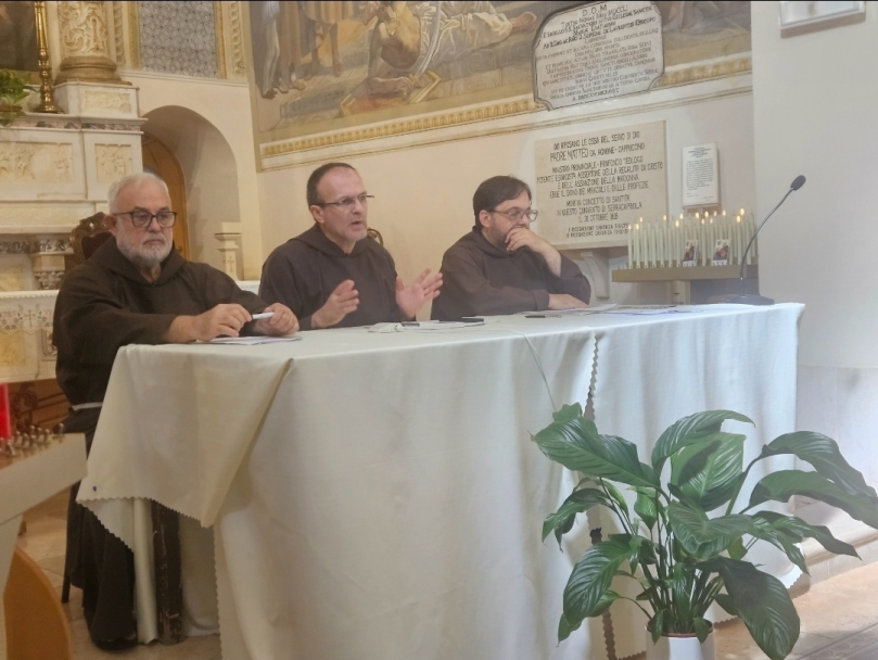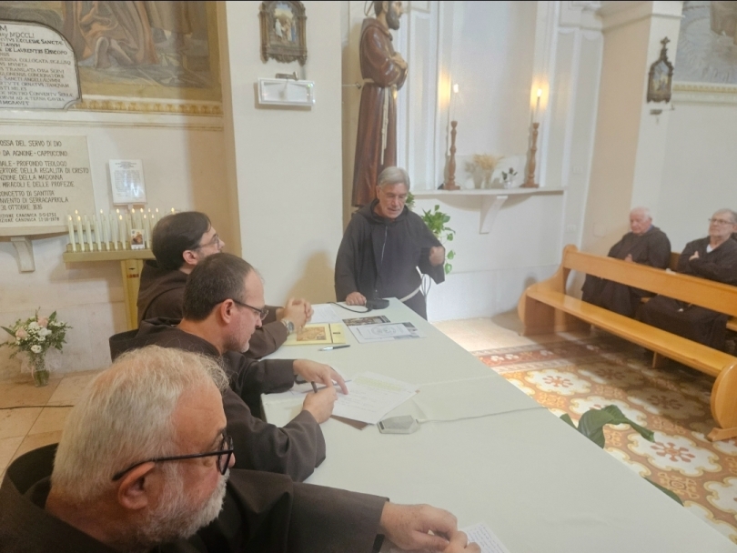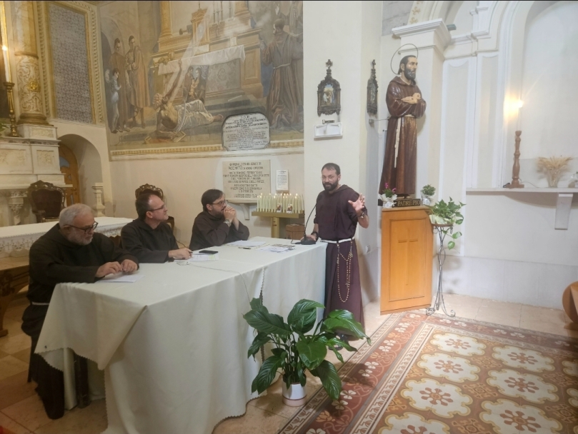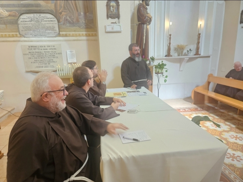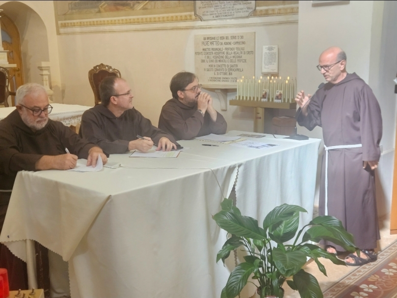 Lo scorso 29 settembre, festa dei santi arcangeli Michele, Gabriele e Raffaele, si è svolto l’incontro di apertura dell’anno fraterno e pastorale, presso il nostro convento di Serracapriola. Pertanto, molti frati sono convenuti dai vari conventi della Provincia per vivere il primo momento formativo guidati dal vicario generale dell’Ordine, fr. Silvio do Soccorro de Almeida Pereira, che ha condiviso una riflessione sul tema: “Essere cappuccini oggi, fra tradizione e profezia”. Dopo un tempo di confronto fraterno durante il quale molti frati, stimolati dalla relazione del Vicario generale, sono intervenuti con domande e commenti, sono stati dispensati il programma della formazione permanente ed anche le proposte dei responsabili dell'animazione missionaria e della pastorale giovanile della Provincia. La giornata si è conclusa con un momento di preghiera presieduto dal Minsitro provinciale e con il pranzo, il tutto in un clima di festa fraterna. Un particolare ringraziamento a chi ha reso possibile lo svolgimento di questa bella giornata.